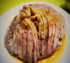 被切成一片一片的蒸肉年飯:蒸肉廚師:馮銀花(忻州忻府區(qū)部落村村民,65歲)材料:土豆、豬肉、面粉、胡麻油、花椒水、蔥、姜(或姜粉)、鹽、水做法:1、將今年新鮮的...